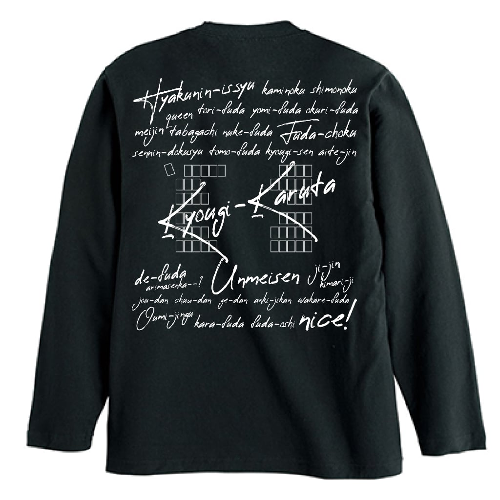 競技かるたプレイヤーならお馴染みの用語がお洒落なデザインで並んだ「5.6oz 長袖Tシャツ」。
